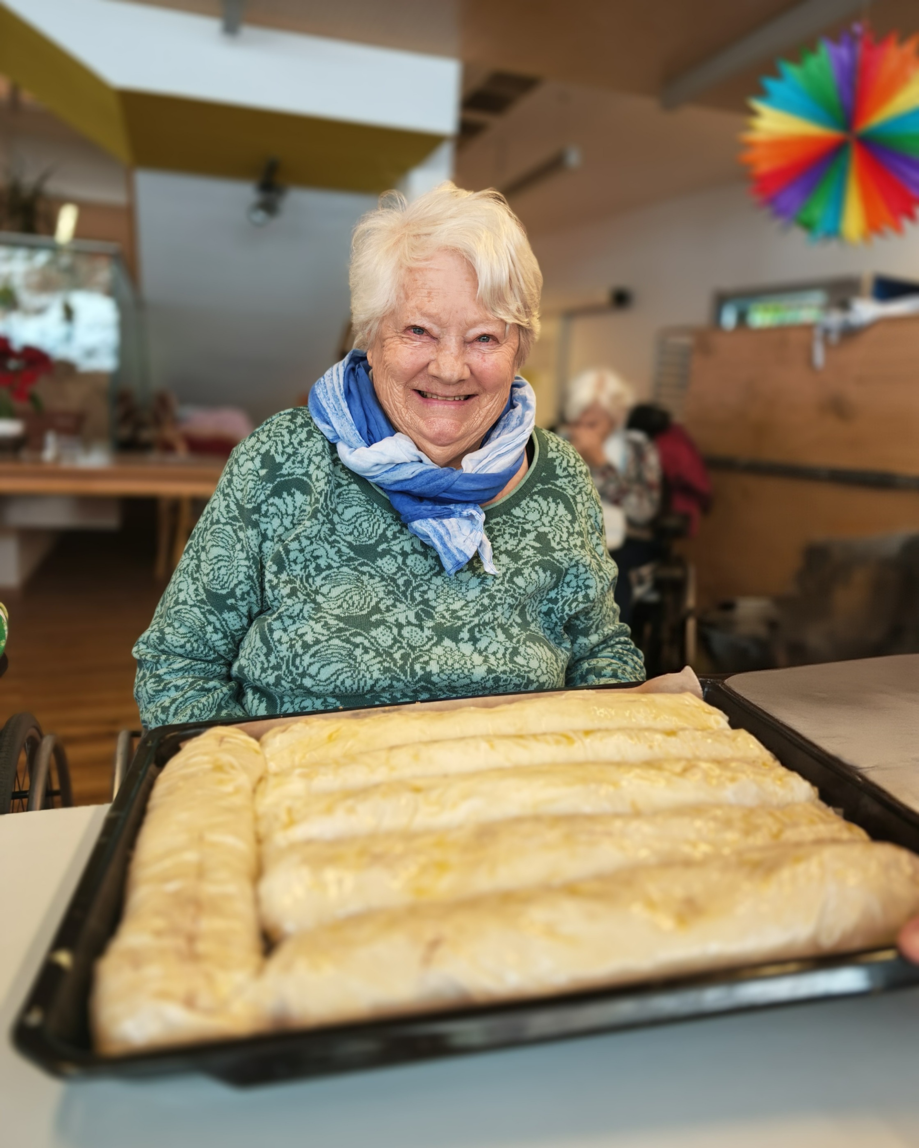 Im Anschluss wurde der frisch gebackene Strudel in gemütlicher Runde bei einer Tasse Kaffee genossen – ein genussvoller Moment des Miteinanders, der allen große Freude bereitete.